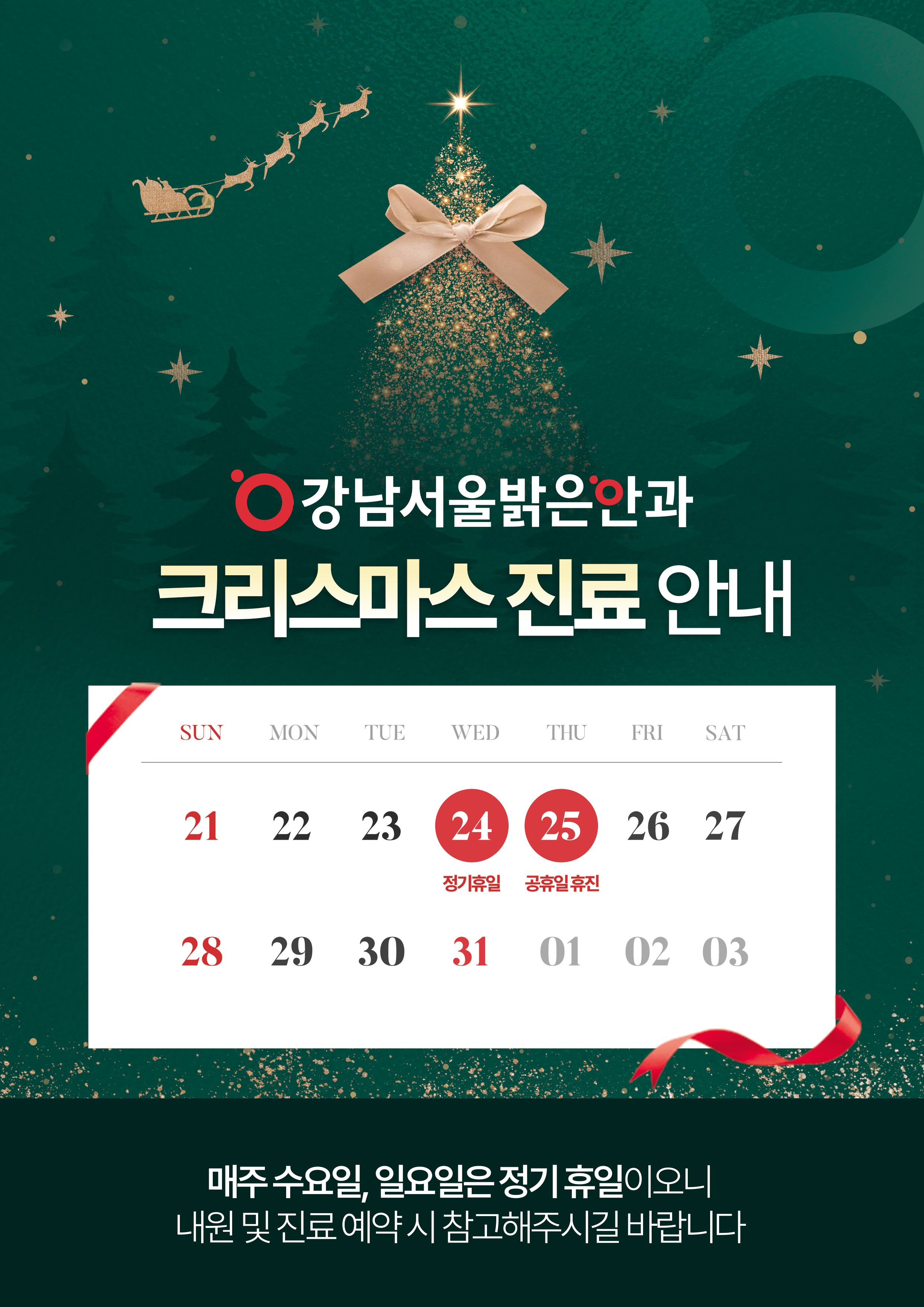 강남서울밝은안과 12월 진료 일정을 안내드립니다.