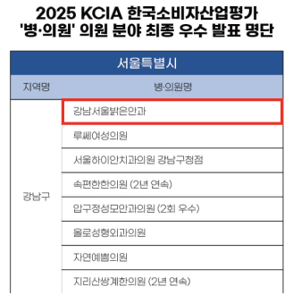 강남서울밝은안과, KCIA 한국소비자산업평가 우수 의원 선정