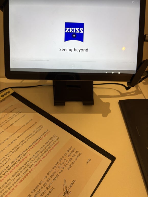 10가지 넘는 시력, 안압, 건조성 등등을 테스트 했어요.